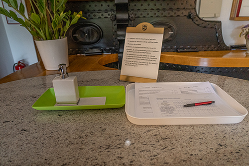 Bevor Sie eintretten desinfizieren Sie sich die Hande und legen eine Gesichtsmaske an.In der Laube durfen sich maximal 5 Personen aufhalten.